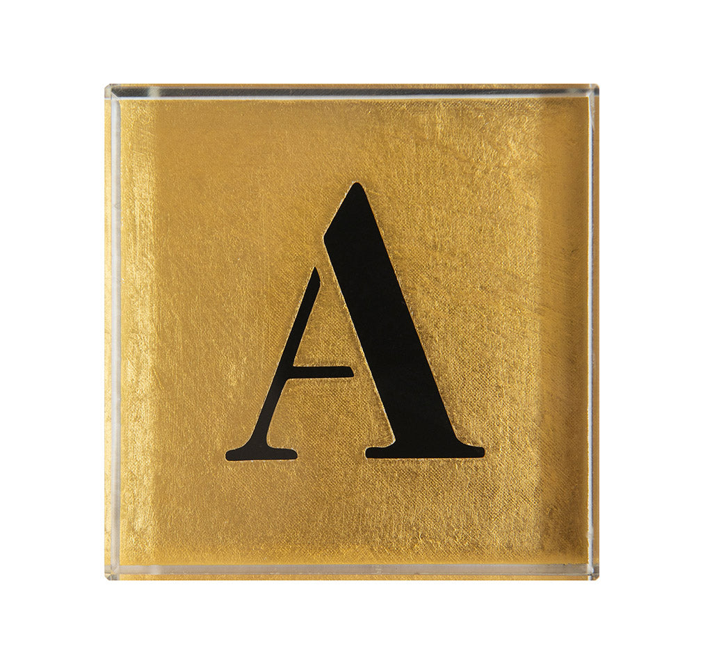 Il fermacarte in vetro con la tua iniziale e una foglia d'oro zecchino.