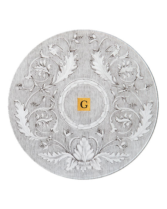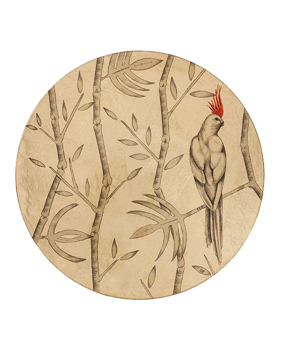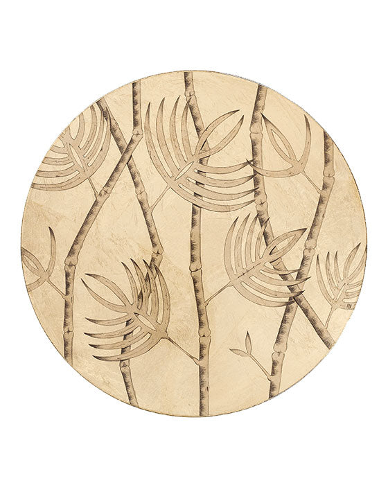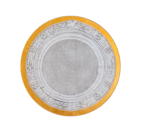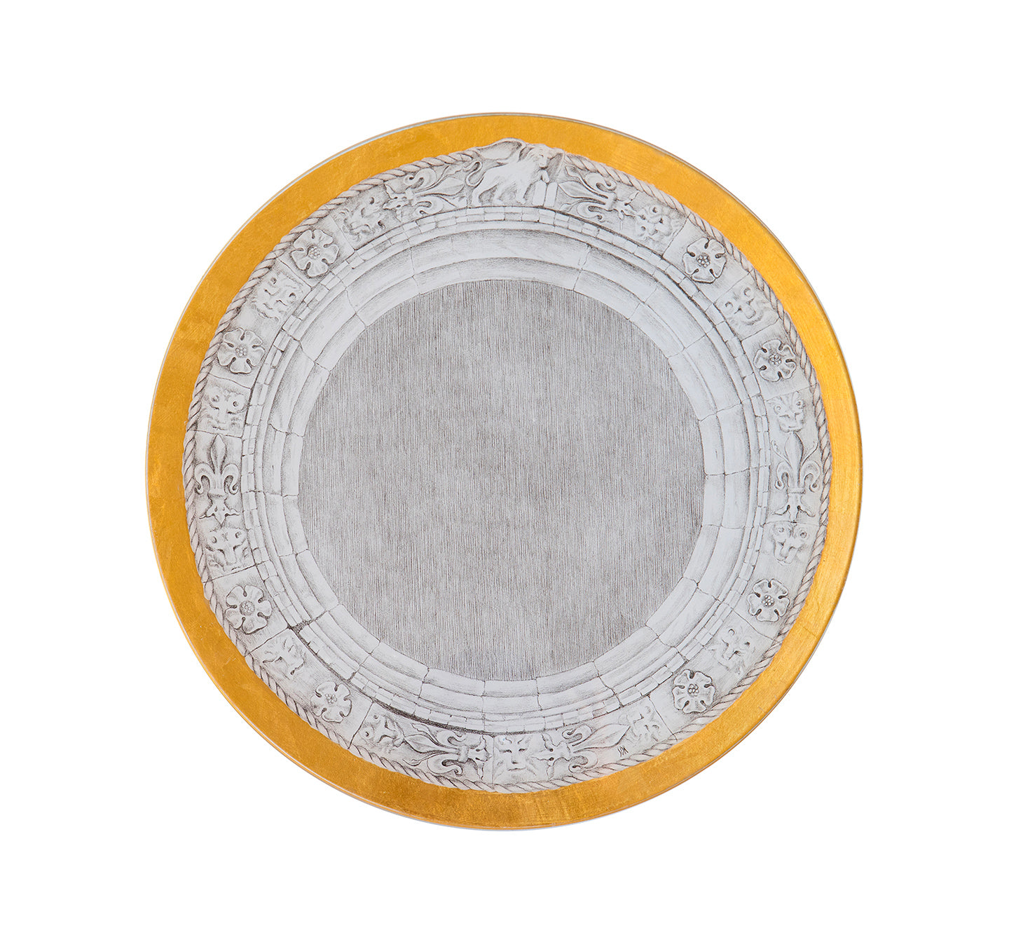 Sottopiatto in vetro temperato con applicazione manuale di foglia oro zecchino.
