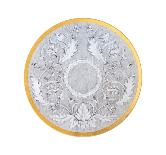 Sottopiatto in vetro temperato con applicazione manuale di foglia oro zecchino.