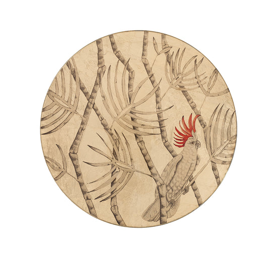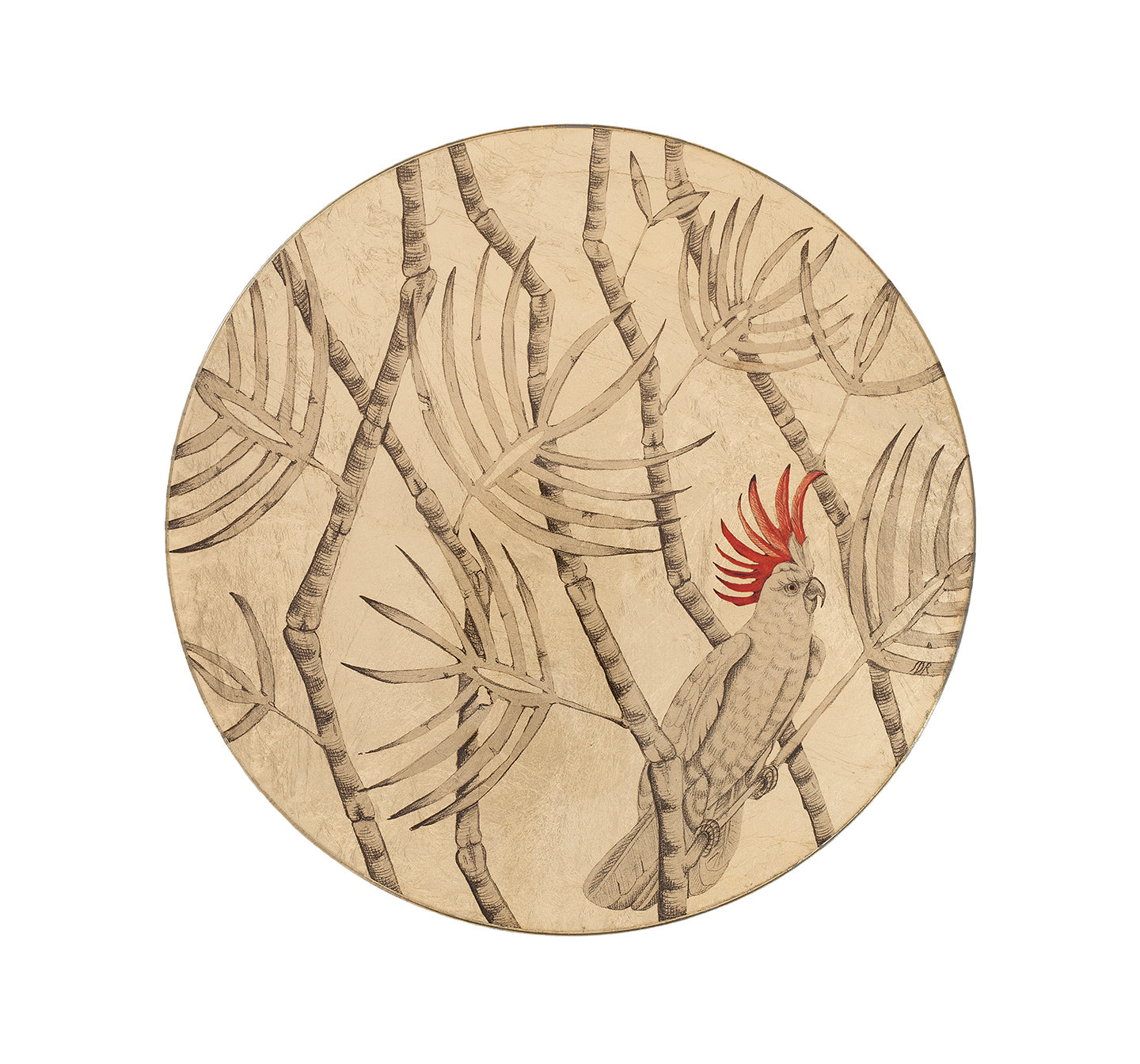 Sottopiatto in vetro temperato con applicazione manuale di foglia oro zecchino.