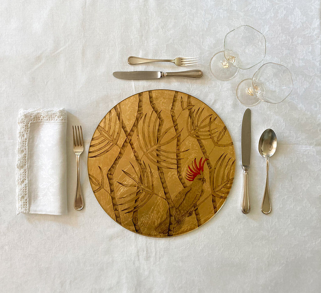 Trovo i sottopiatti molto pratici: li asciughi e sono puliti senza bisogno di lavarli e senza che rimangano macchie di sorta. Sono un oggetto d’arte che si adatta ad ogni occasione: dalle cene eleganti ai pasti quotidiani nella mia casa di campagna. L’oro è caldo e luminoso e trasmette una buona energia.