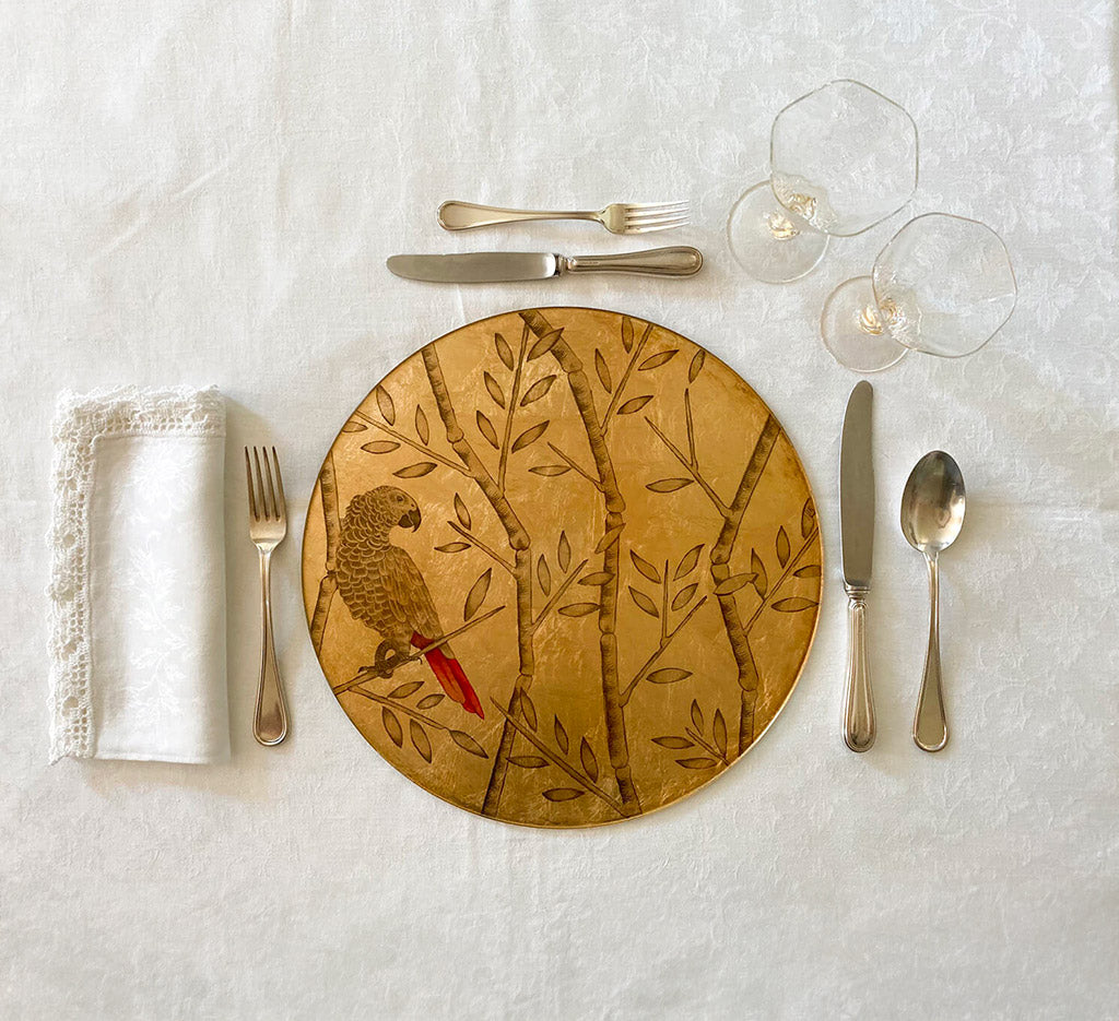 Trovo i sottopiatti molto pratici: li asciughi e sono puliti senza bisogno di lavarli e senza che rimangano macchie di sorta. Sono un oggetto d’arte che si adatta ad ogni occasione: dalle cene eleganti ai pasti quotidiani nella mia casa di campagna. L’oro è caldo e luminoso e trasmette una buona energia.
