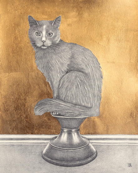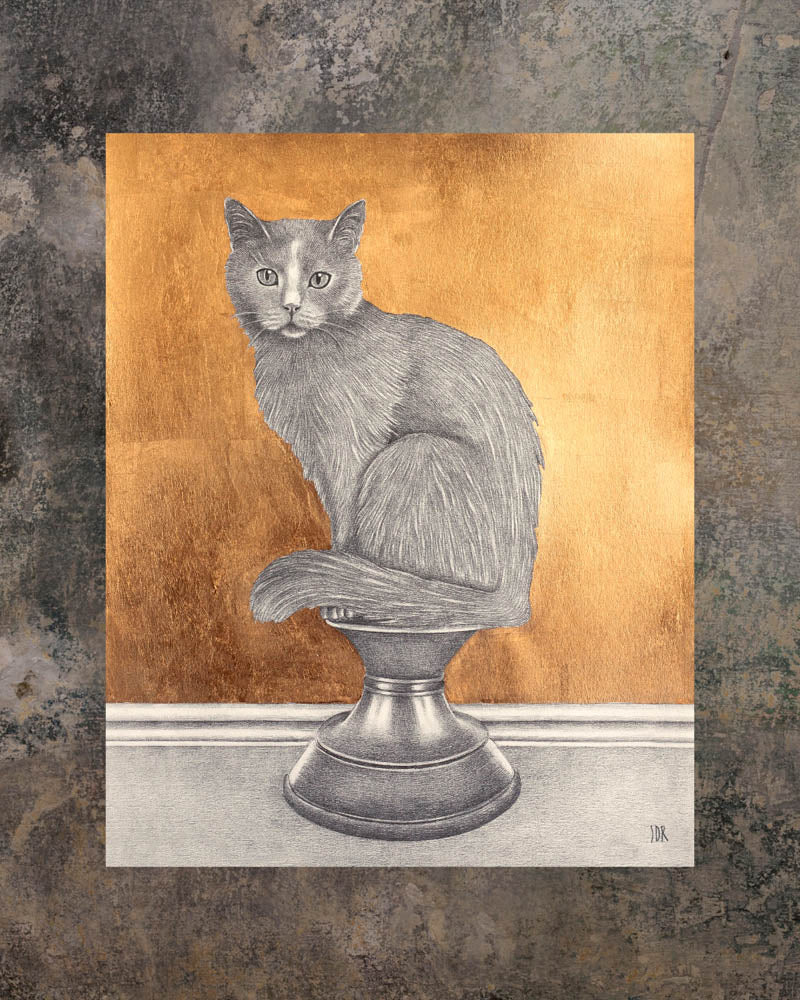 Ho trovato molto interessante l’aver messo su piedistalli animali diversi, anche quelli considerati più umili, come quelli da pollaio. L’oro dello sfondo rafforza la preziosità offerta agli animali. Sul muro di casa un effetto prezioso, raffinato, ma anche divertentemente scanzonato. Un gran bell’effetto!