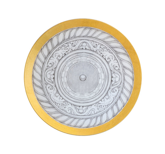 Sottopiatto in vetro temperato con applicazione manuale di foglia oro zecchino.